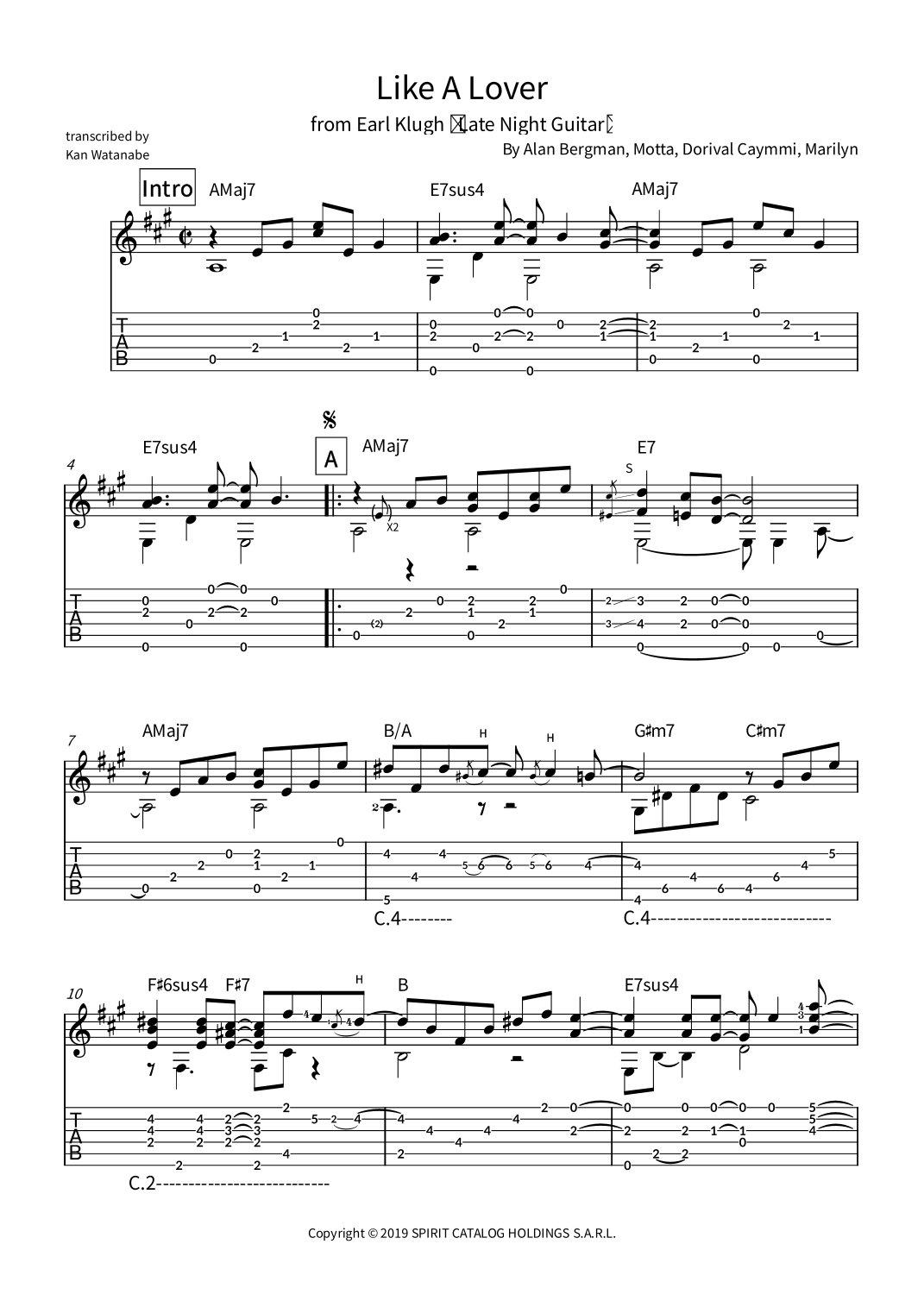 Download and Print Like A Lover (arr. Kan Watanabe sheet music for Solo Guitar by Earl Klugh from Sheet Music Direct.